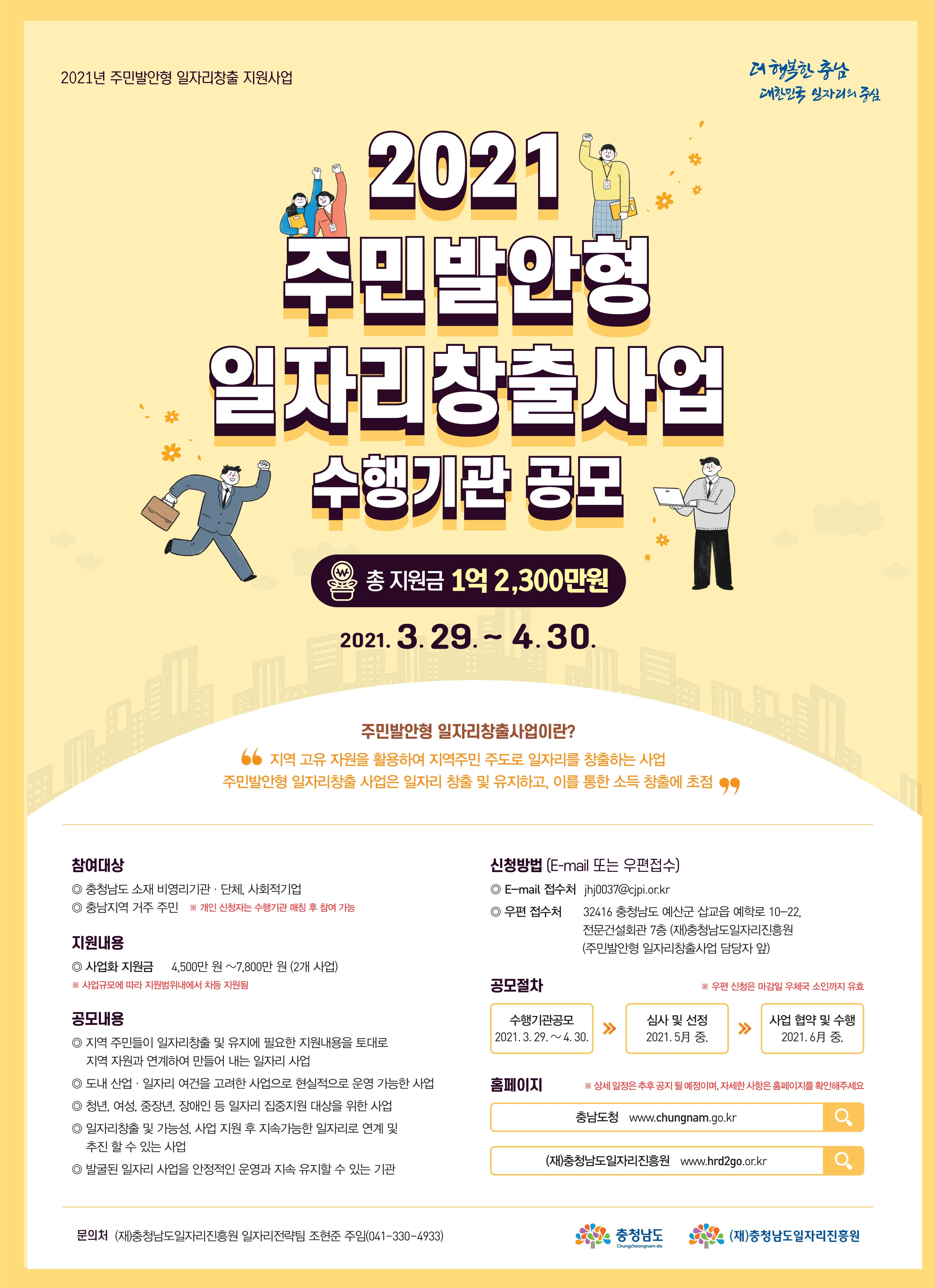 - [충청남도일자리진흥원] 2021년 주민발안형 일자리 창출사업 안내
