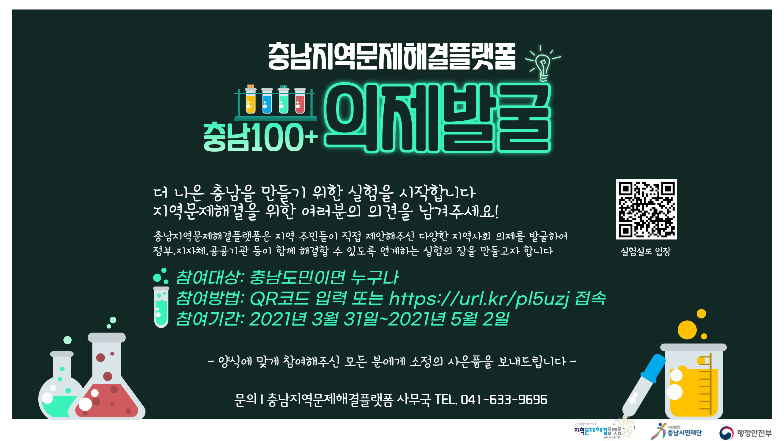 - [충남지역문제해결플랫폼] 2021 충남100+ 의제발굴 접수 안내