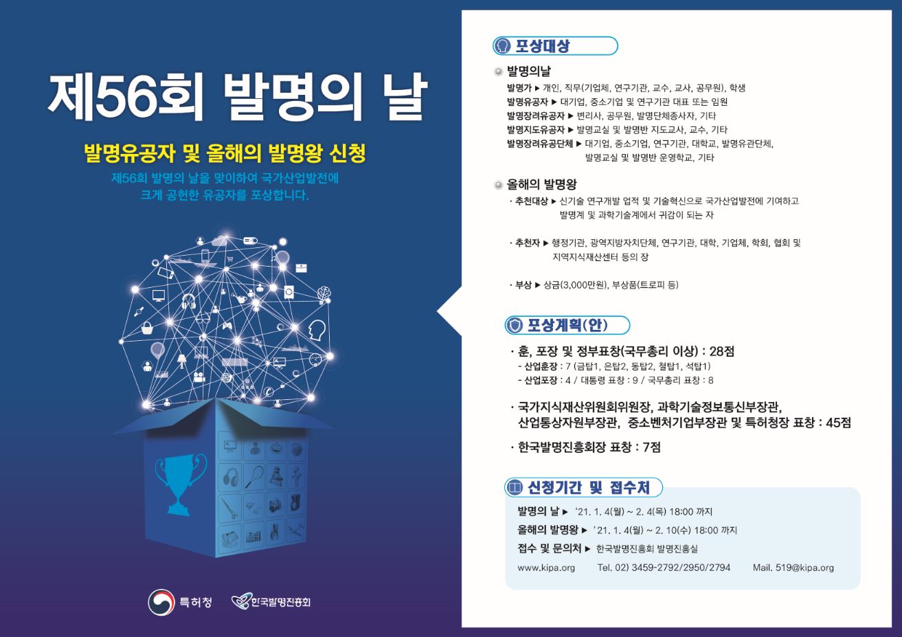- [일반공지] [한국발명진흥회] 제56회 발명의 날 포상 및 올해의 발명왕 선발 신청 안내