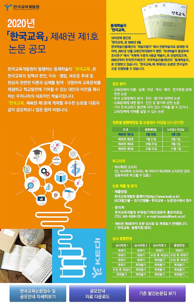 - [일반공지] 한국교육개발원 등재학술지 한국교육 제48권 제1호 게재논문 공모 안내