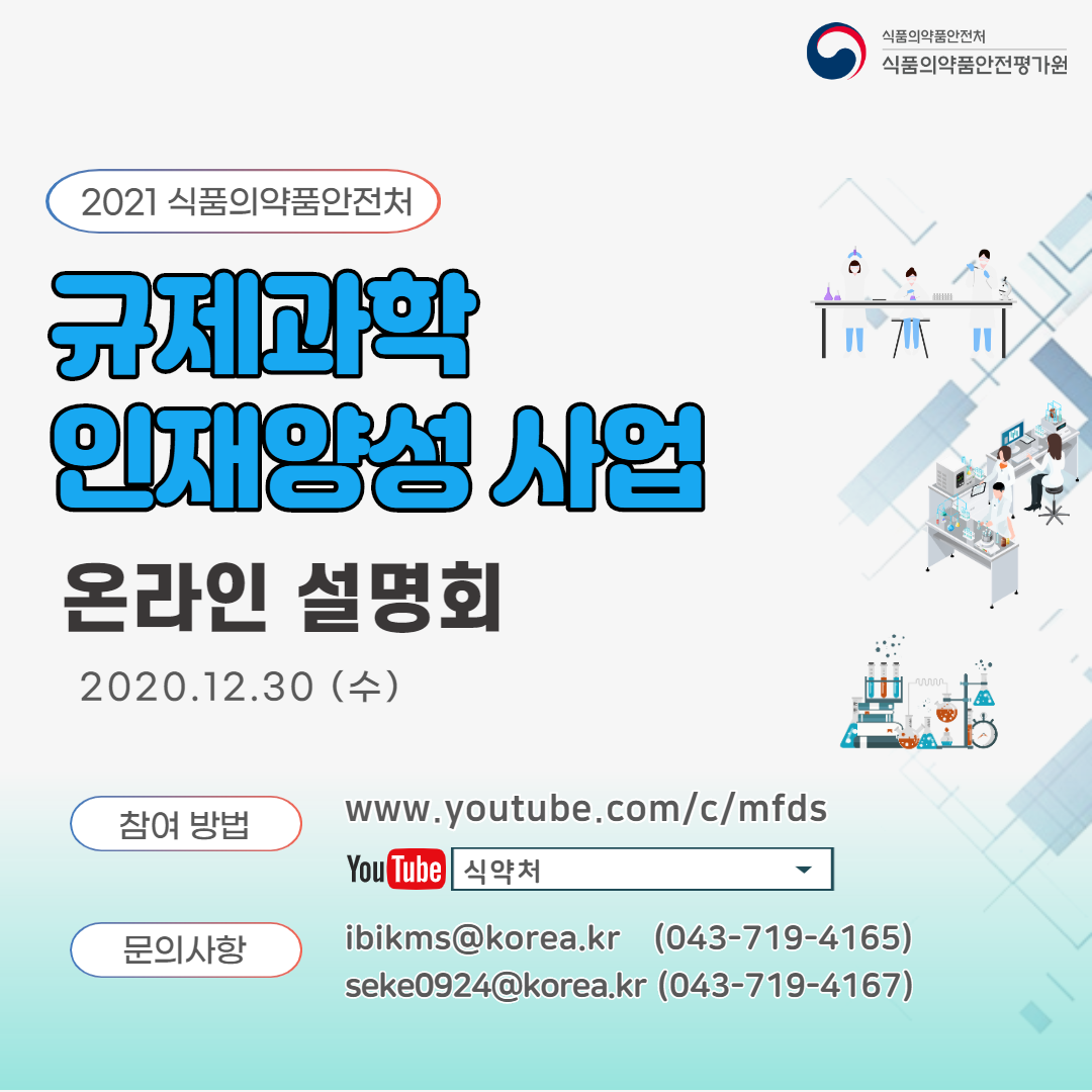 - [식품의약품안전평가원] 2021년도 식약처 규제과학 인재양성사업 온라인 설명회 개최 알림