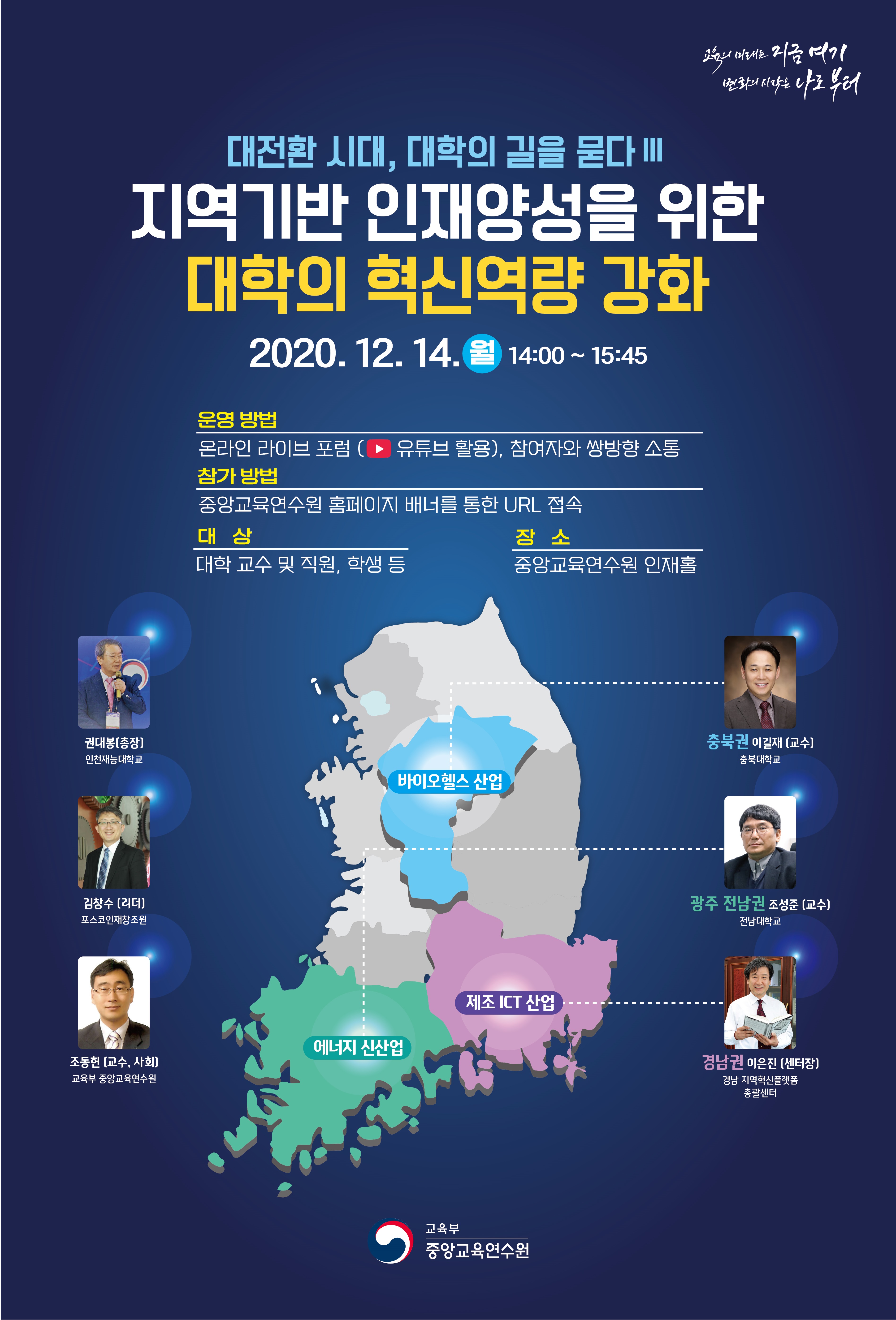 - [일반공지] [중앙교육연수원] 「대전환 시대 대학의 미래를 묻다 Ⅲ」 온라인 포럼(3차) 개최 안내