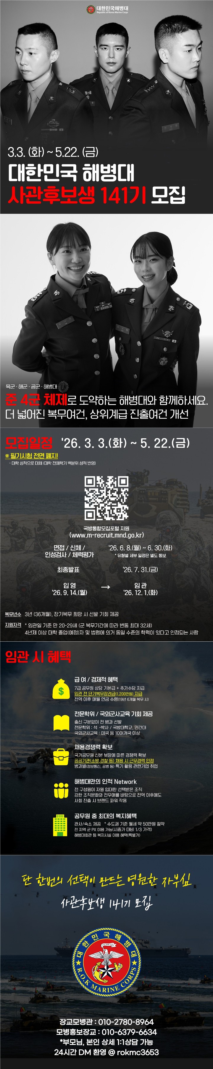 | 서울 [일반] | [예비군대대] 해병대 장교 사후 141기 모집 홍보 |