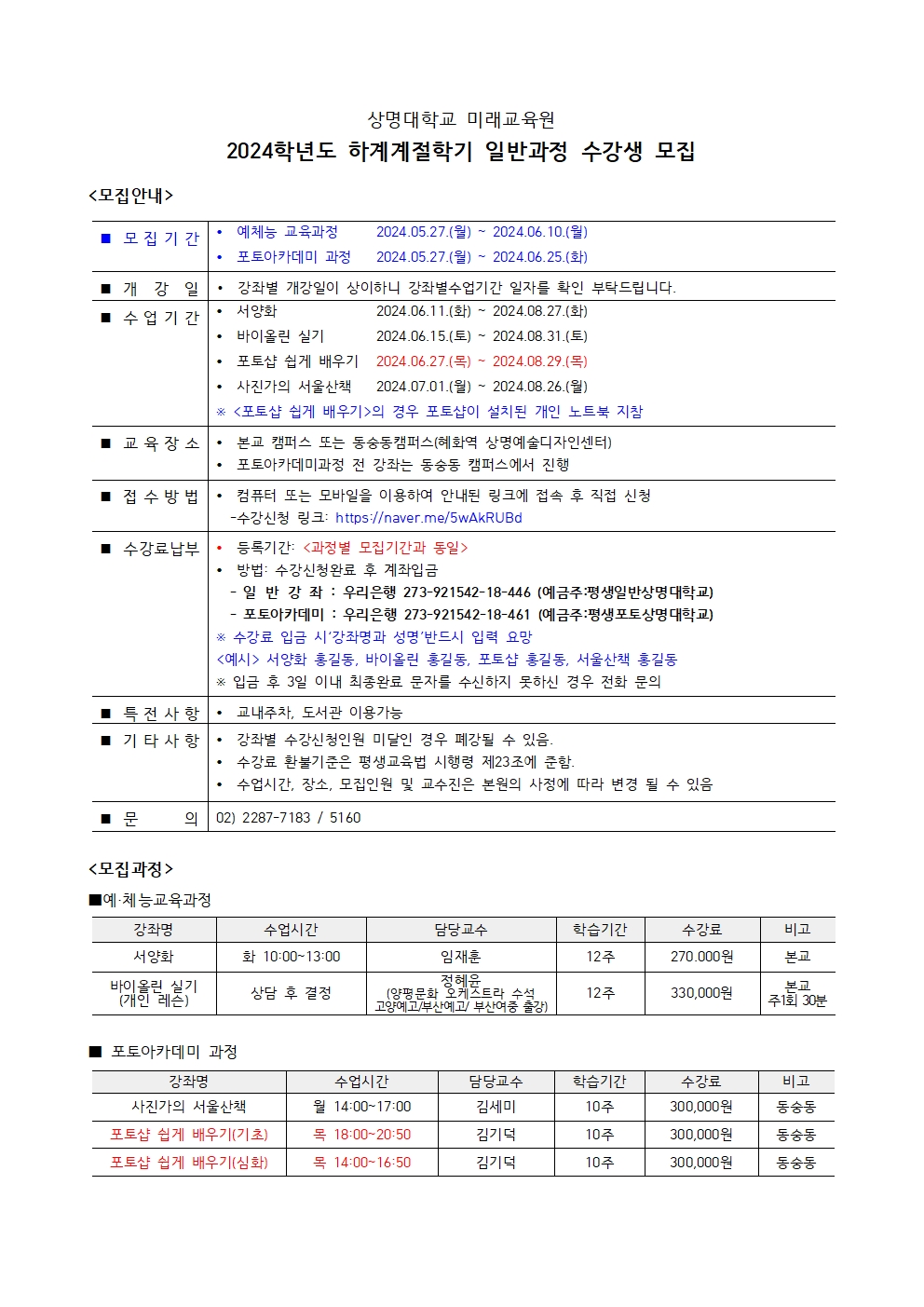 - [추가모집]2024학년도 제1학기 일반과정 수강생 모집