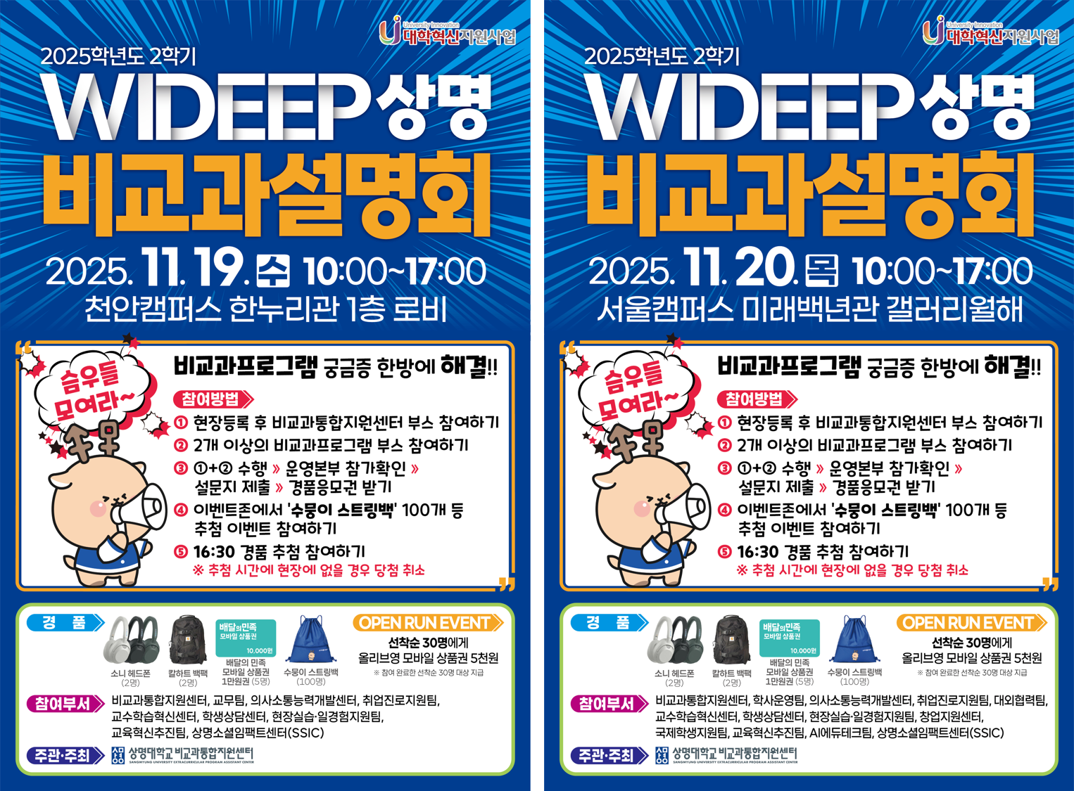 | 상명 [학생생활] | 🎊[비교과통합지원센터] 2025-2 WIDEEP상명비교과설명회 개최 안내(서울,천안) 🎊 |