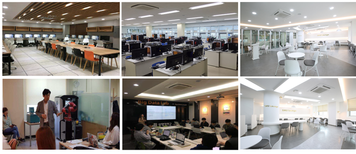 [상명대학교 교육활동 시설들(빅데이터융합 미러링사이트, 지능정보융합 미러링사이트, 스마트생산융합 미러링사이트, 3D프린팅 융합센터, SMU Lounge 등)]