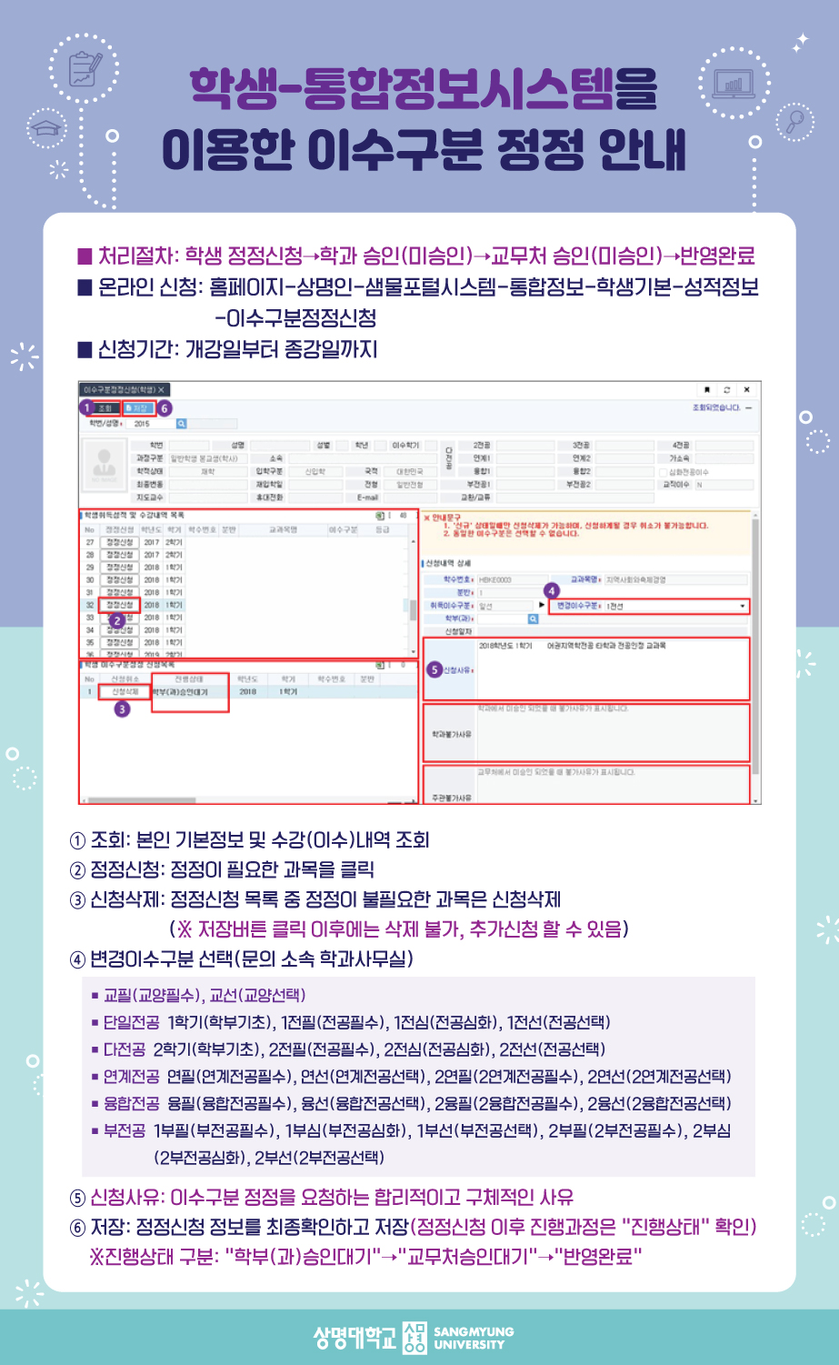 - [학사] 2021학년도 제1학기 이수구분 정정 안내