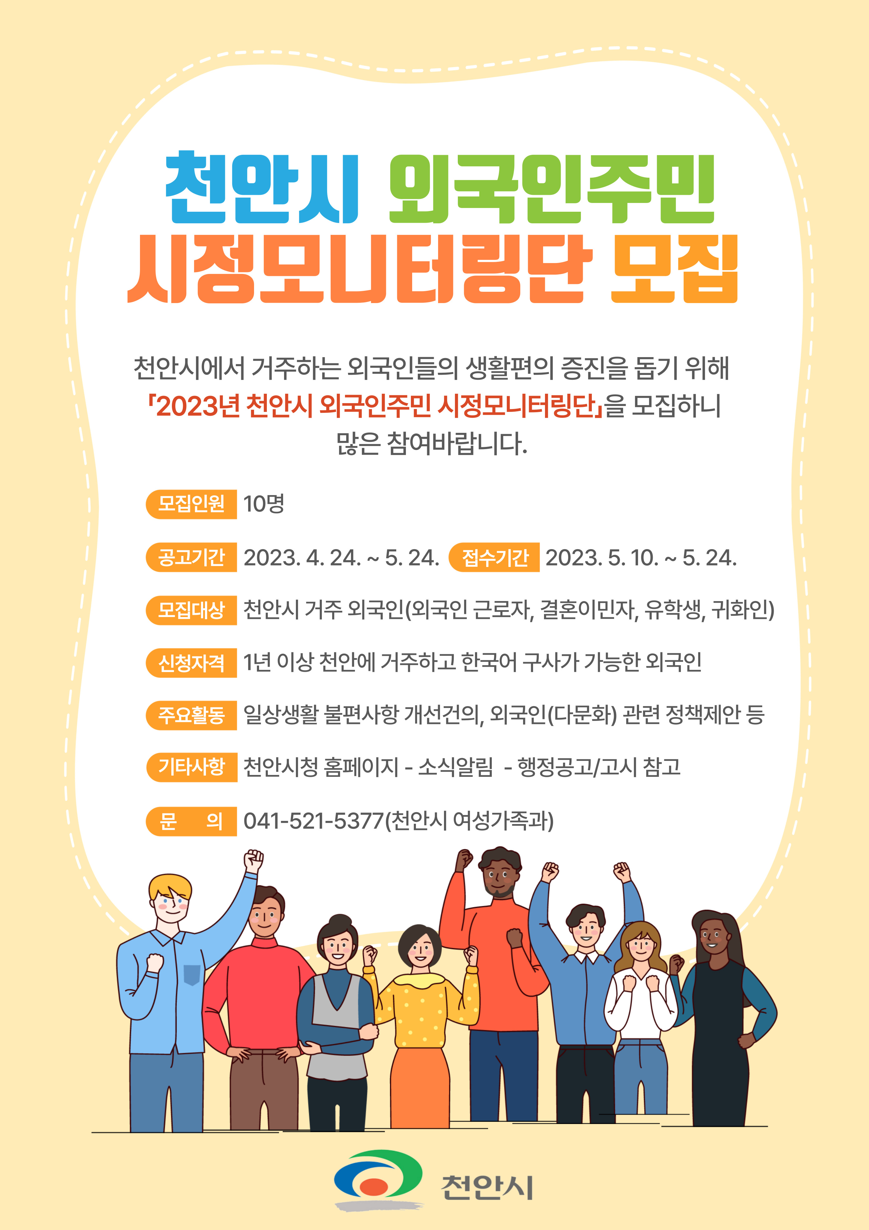 - [천안시] 「2023년 천안시 외국인주민 시정모니터링단」모집 홍보