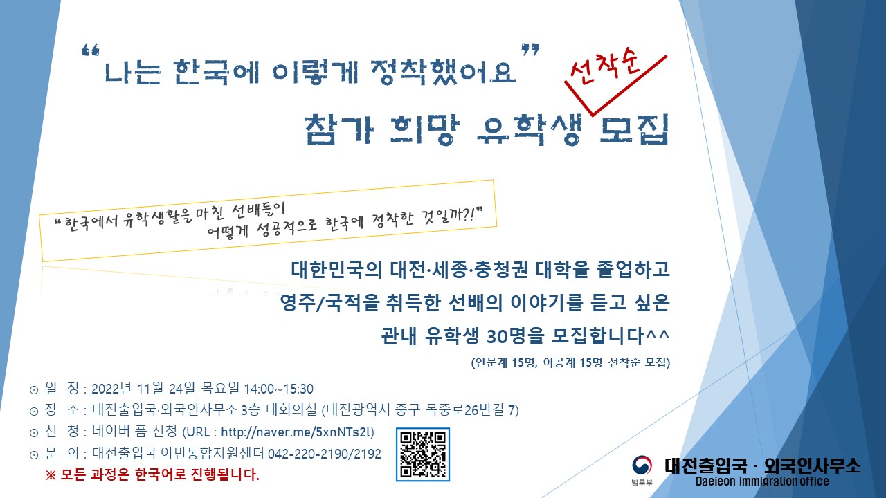 - [출입국사무소] 유학생 대상 '성공적인 한국 정착 생활' 행사 안내