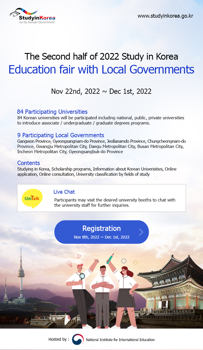 - [국립국제교육원] 2022 지자체와 함께하는 한국유학박람회 (www.studyinkorea.go.kr) 안내